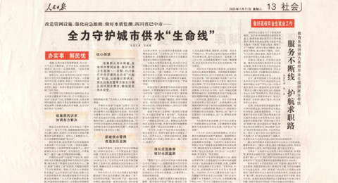 2023年6月,巴中市公用事业投资集团股份有限公司建设完成江南二环路供水加压站及配套管网项目,有效解决了太子公寓等14个小区、4000余户长期以来缺水欠压问题,2023年7月人民日报以《全力守护城市供水“生命线”》为题,对该事迹进行了大篇幅报道,充分肯定了国企的担当作为。